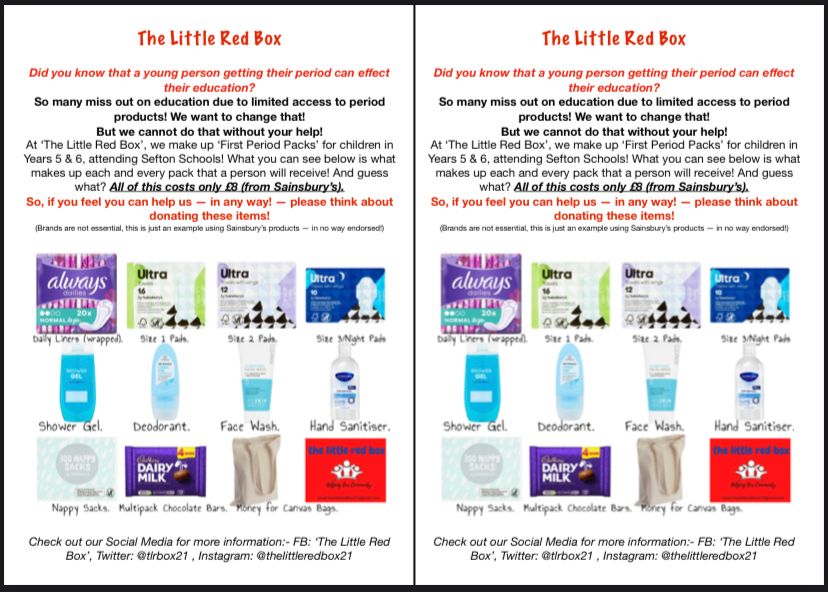 What & Why?Our aim is to provide primary school ages children (upper Key Stage 2) with the Essentials they need for starting their periods. We provide them with age-appropriate personal hygiene items that will support them during an unsettling time, as well as ensuring all of the young people have the same start and support — ensuring they do not have to miss out on their school education, whilst educating them on their personal care too.